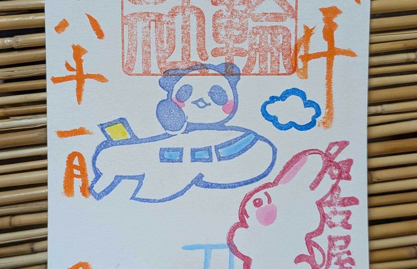 「パンダ見送り」「一粒万倍日」直書き御朱印