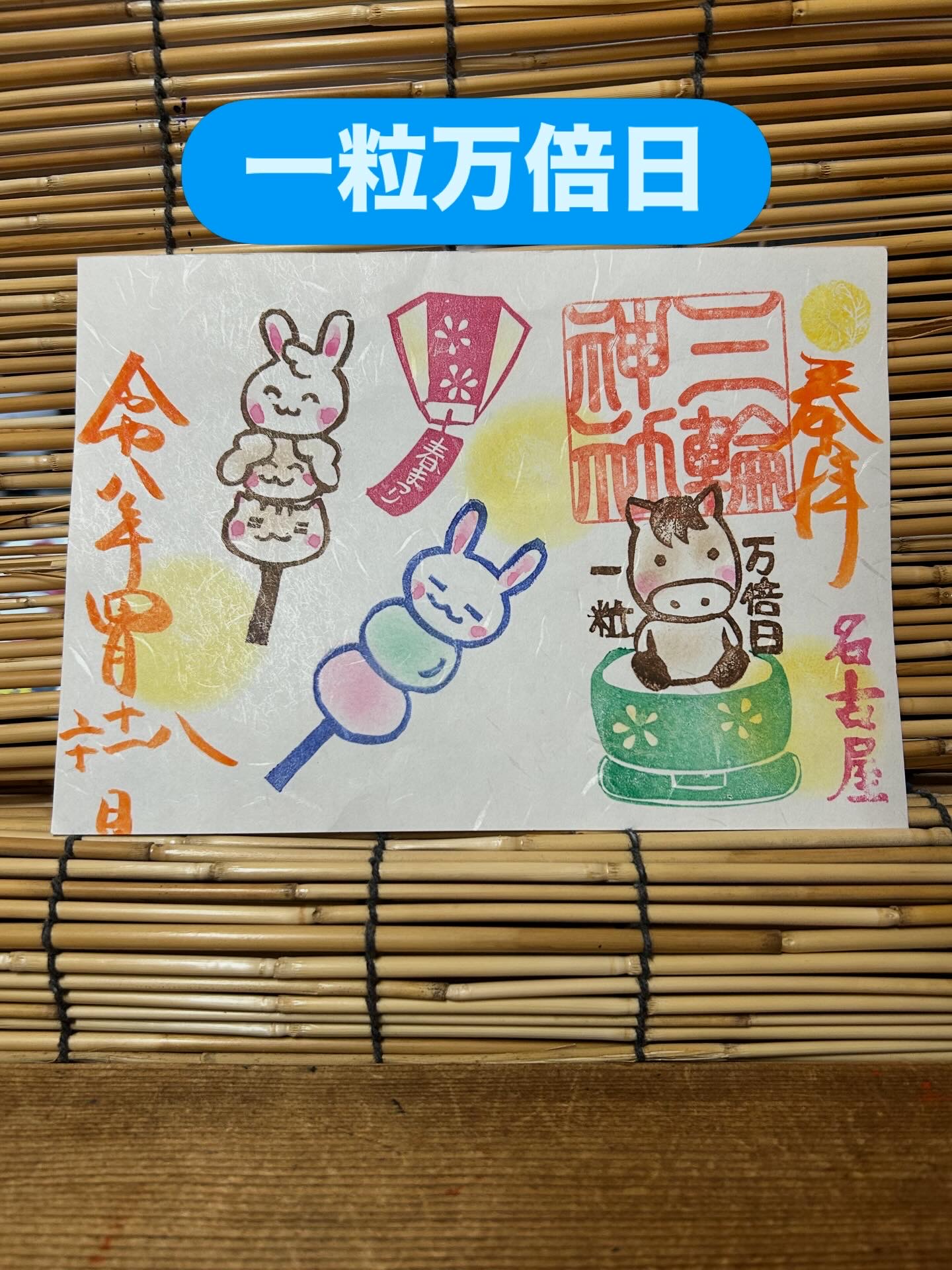 #名古屋 #大須 #三輪神社 #限定 #御朱印 絵馬 良席 推し 当選 朔日参り エイプリールフール 穀雨 一粒万倍日 嵐 推し活 いちご 推し活 フラミンゴ ペンギン 恐竜 恐竜の日 平野紫耀ティラノ